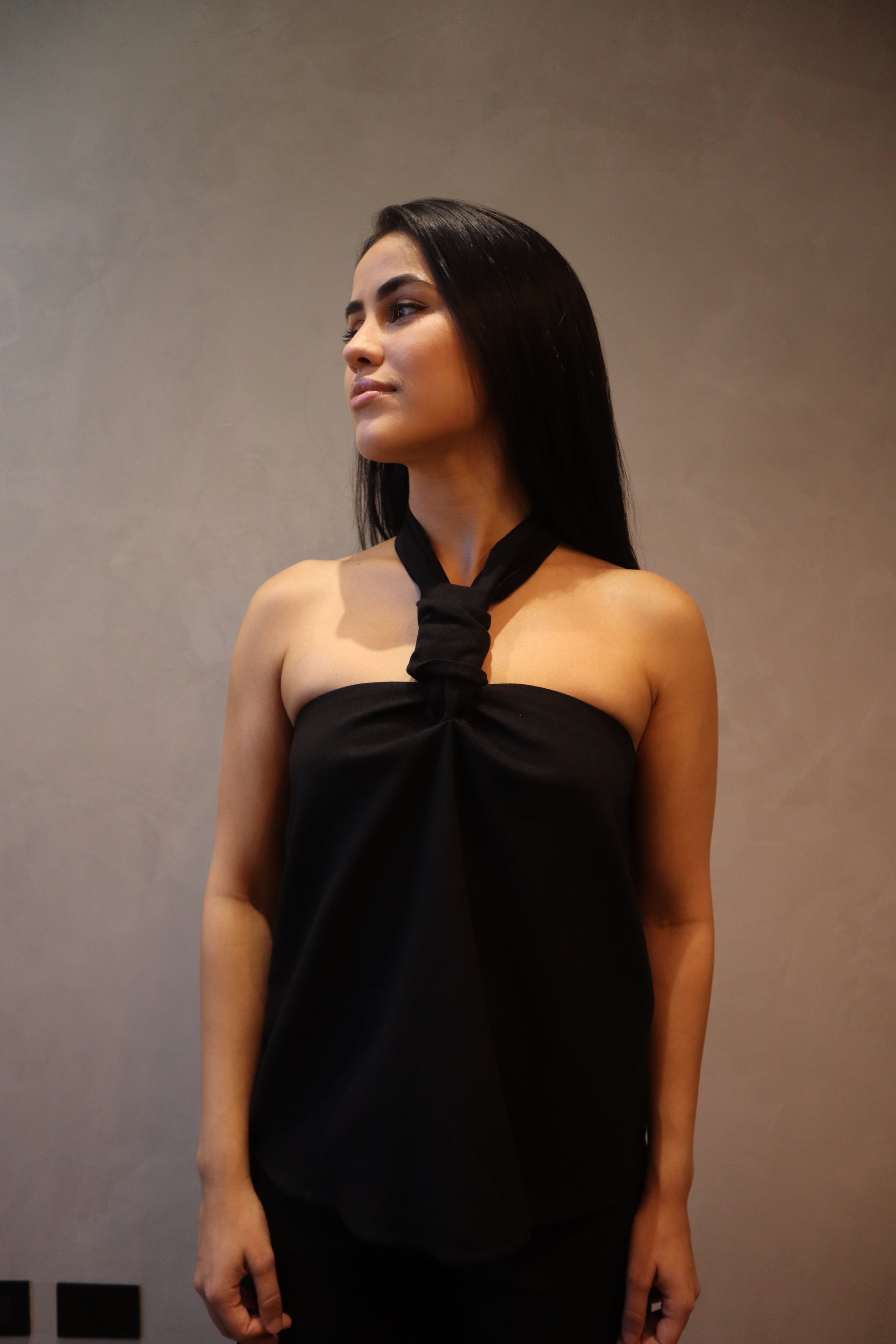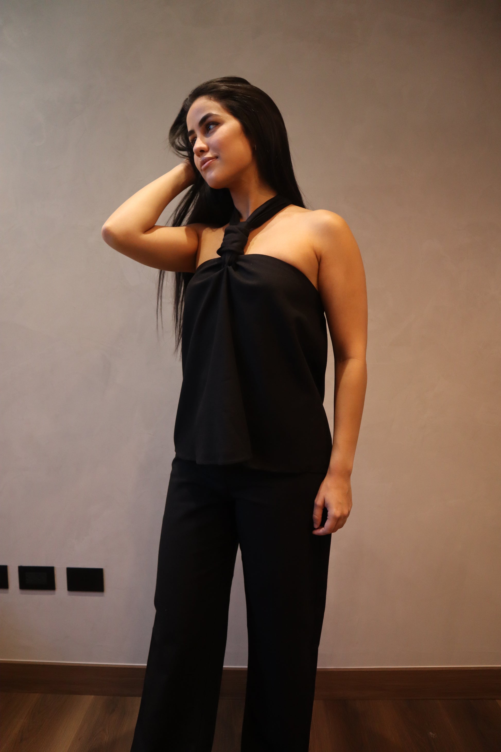 Aitana Top es una pieza que combina la frescura del lino con la elegancia del negro. Su delicado moño al frente le da un aire romántico y femenino, mientras su silueta sencilla y versátil la convierte en el aliado perfecto para cualquier ocasión.